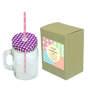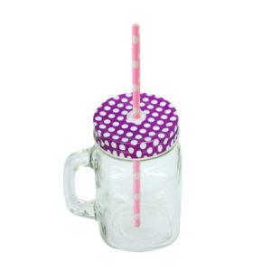 โหลแก้ว วินเทจ มีหูจับ ขนาด 600 ml. ( สีม่วงลายจุดใหญ่ )
