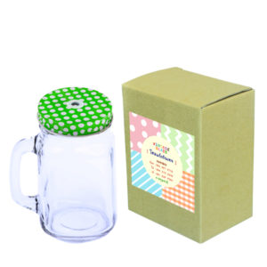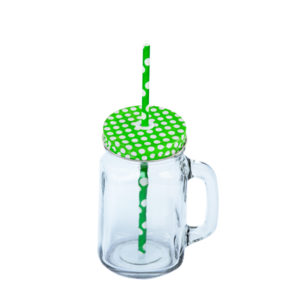 โหลแก้ว วินเทจ มีหูจับ ขนาด 600 ml. ( สีเขียวลายจุดใหญ่ )